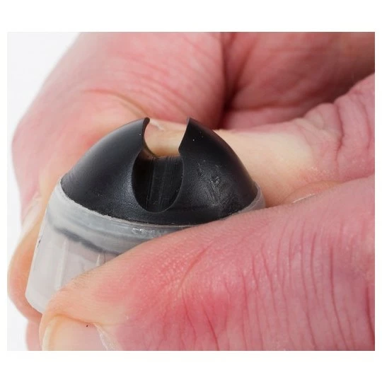 Het bevestigen van de pole pot doe je het beste door deze tussen duim en middelvinger beet te pakken, hierna druk je met je ringvinger aan de binnenzijde van de pole pot.