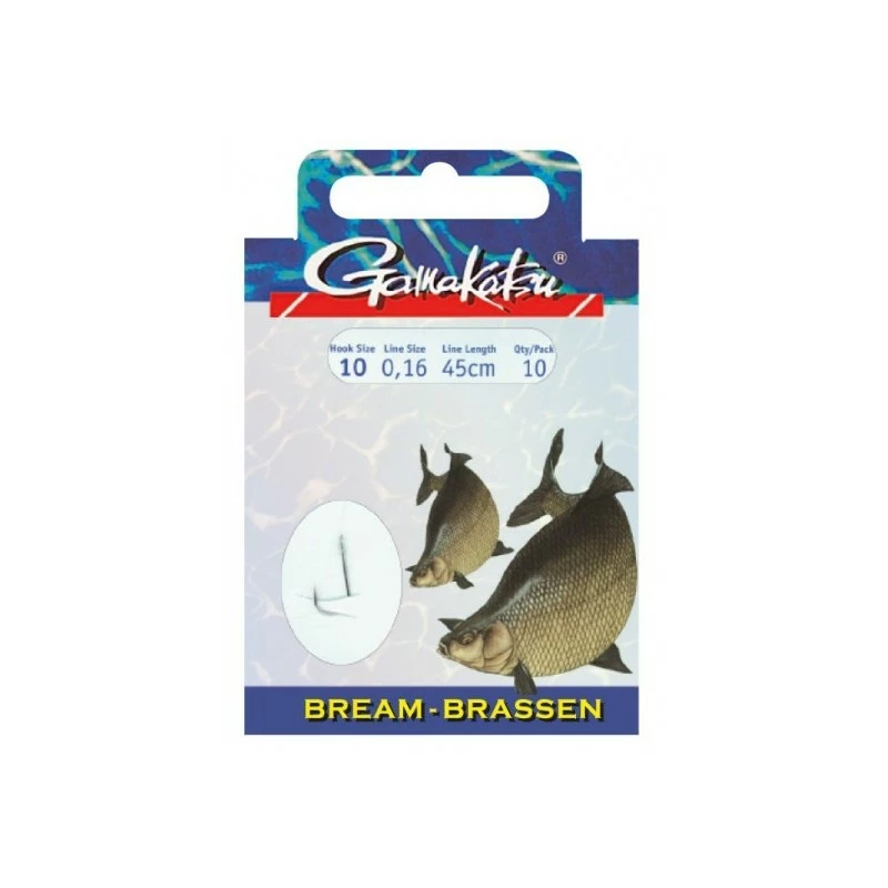 De Gamakatsu 1310N onderlijnen zijn verkrijgbaar in lengtes van 45cm lang en speciaal voor het vissen op brasem. Voorzien van een haak met bledje en weerhaak.